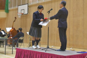 2名の優秀前橋育英生を代表して、2年の藤田さんが校長先生より表彰されました。