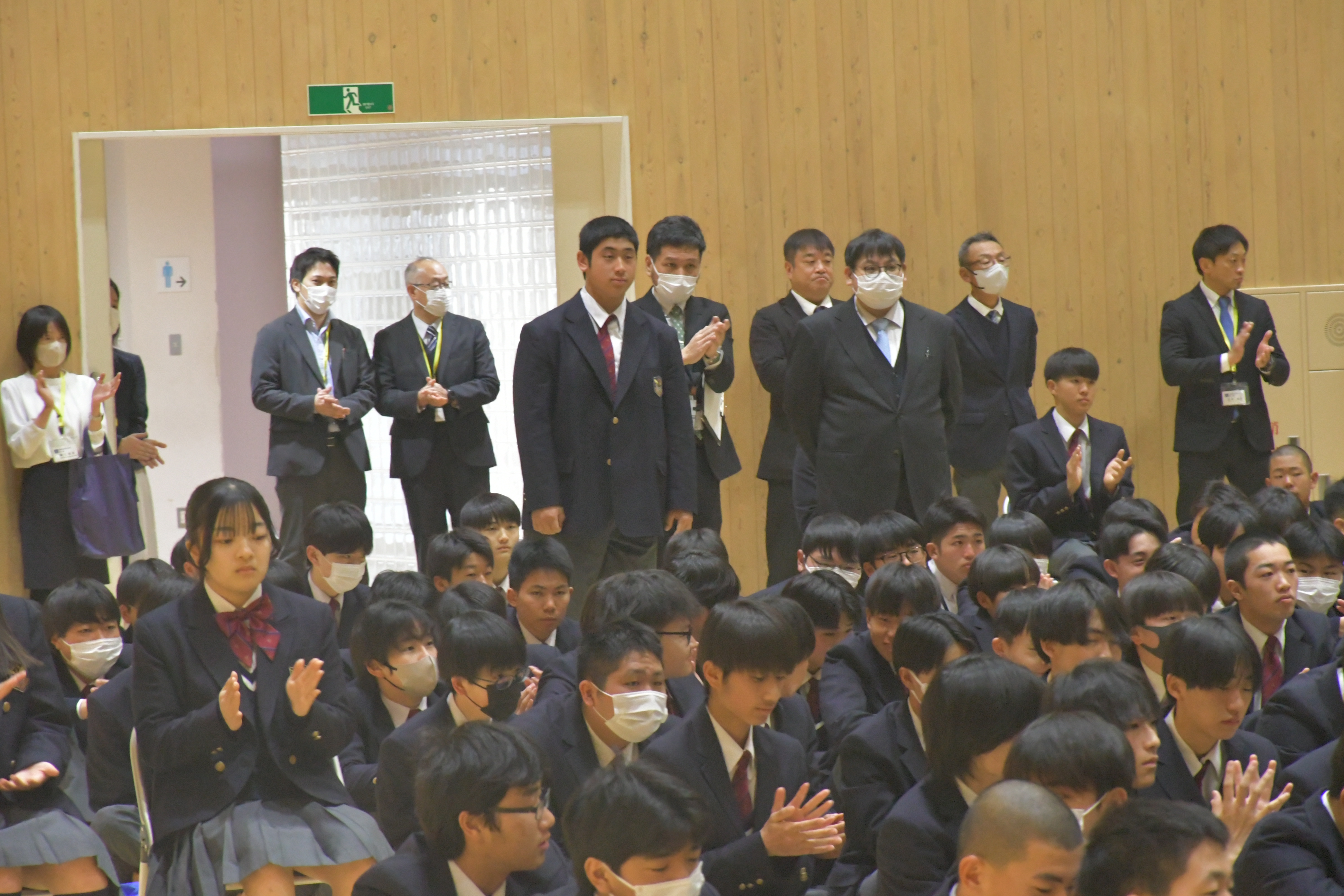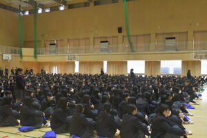 まずは、優秀前橋育英生で表彰を受けた生徒たち、並びに全国大会出場を果たしたクラブの皆さん、おめでとうございます。この一年、様々なクラブが全国大会出場を果たし、育英生の力を存分に感じました。次の1年では、クラブで活躍する生徒以外の皆さんにもさらに成長してもらいたいという想いから、「コンフォートゾーン、自分が心地よいと感じる世界から出よう!」という言葉を送ります。さらに成長するには、心地よいと感じるところから一歩踏み出し、成長できる世界へ飛び出す。そんな勇気をもって、次の一年はさらに成長した皆さんを見られればと思います。がんばりましょう!