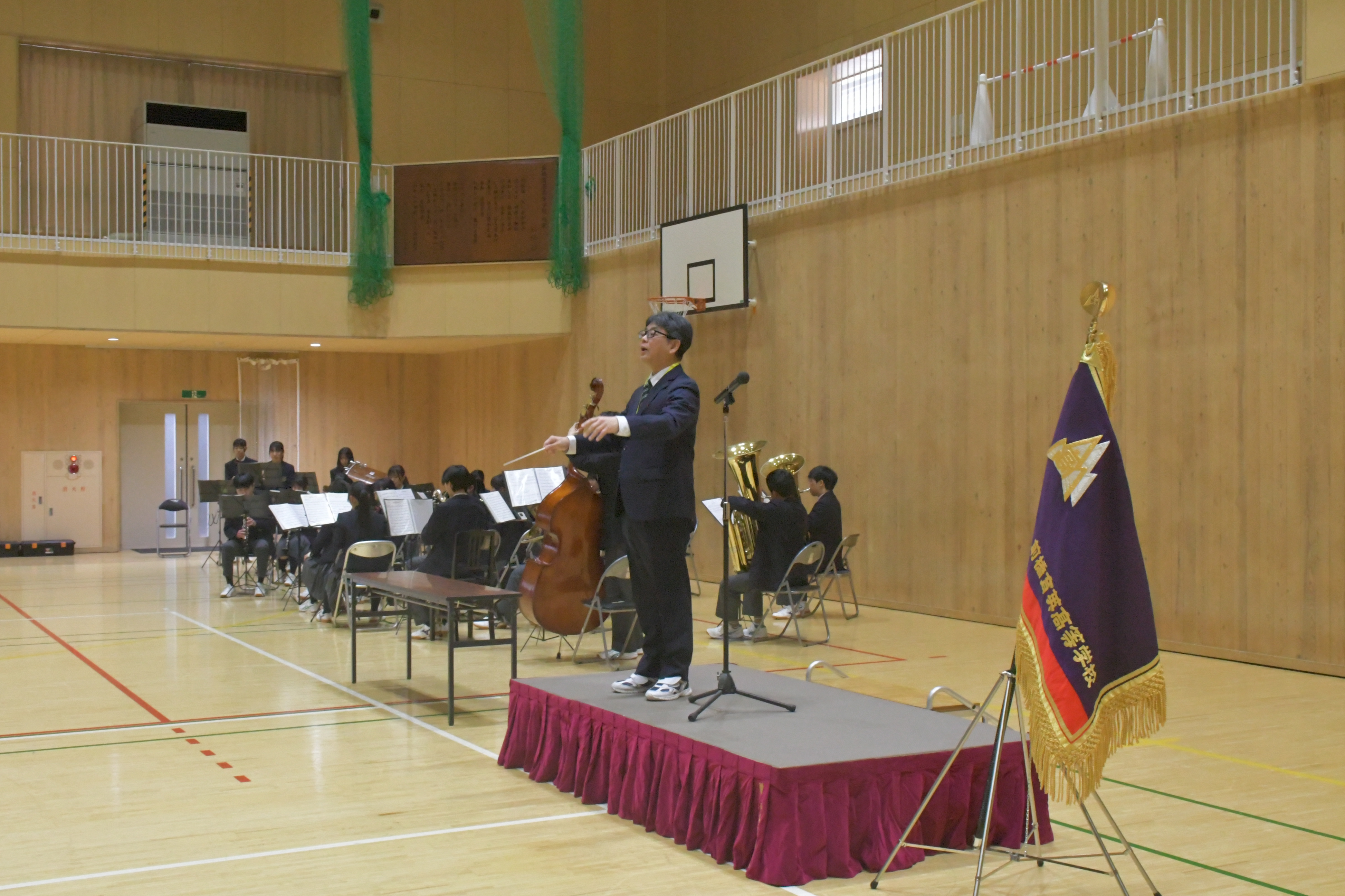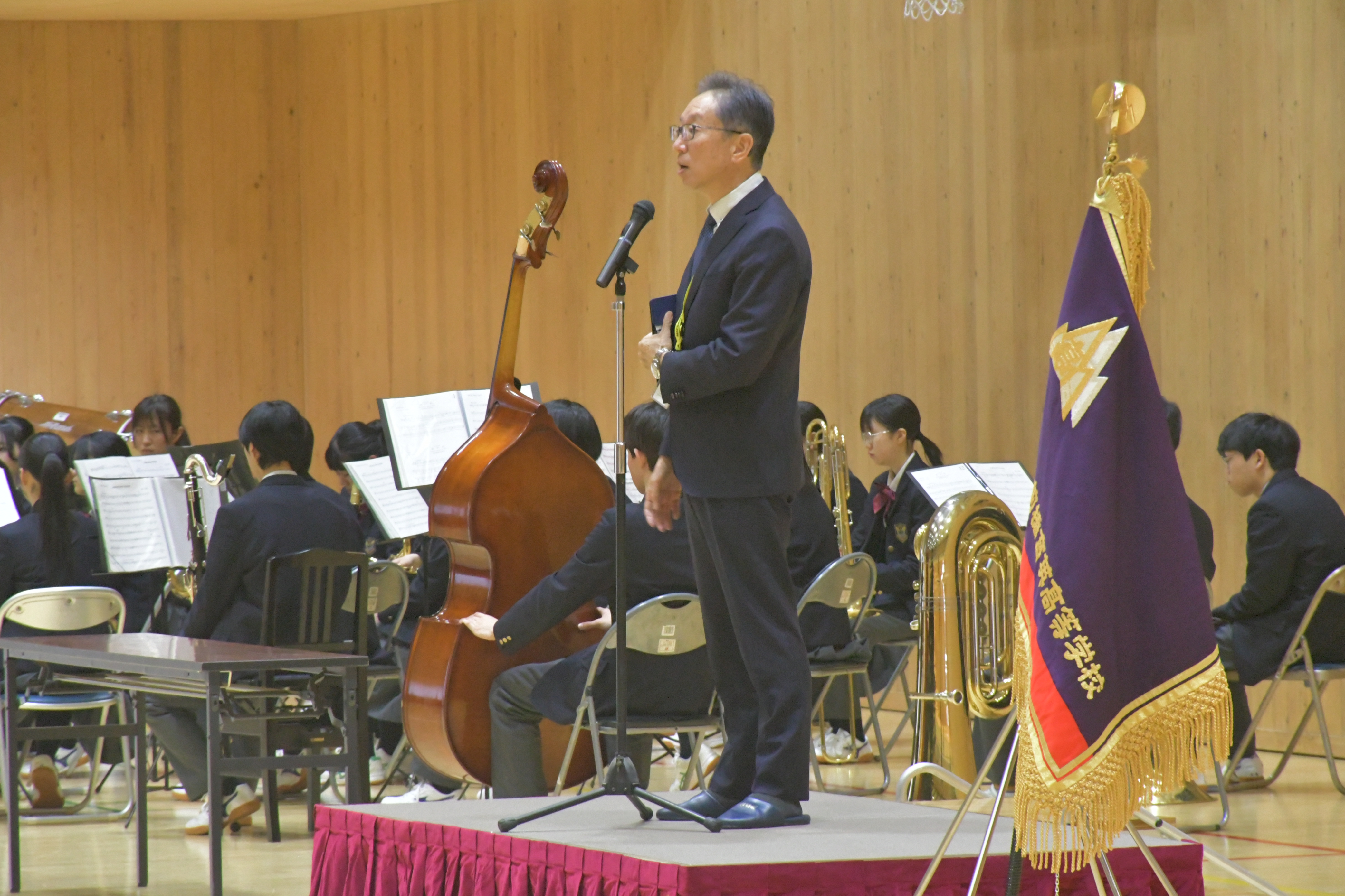 吹奏楽部の演奏に合わせて校歌斉唱の後、校長先生より講話をいただきました。