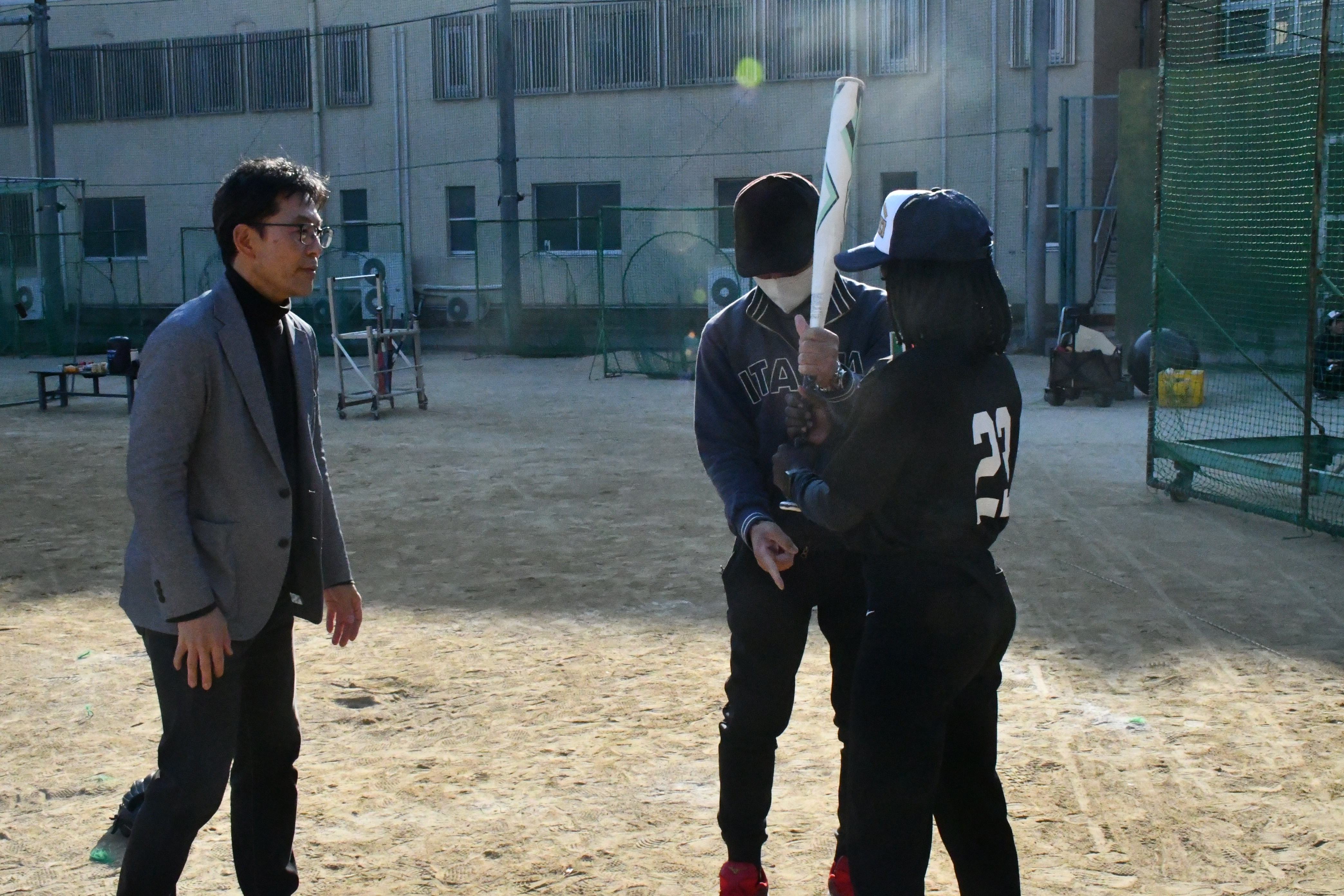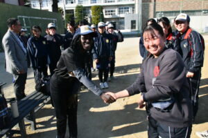 原口監督からの指導を受けながら、ソフトボールの技術力向上につなげたいという意欲的なジェニファーさんの姿勢が印象的でした。